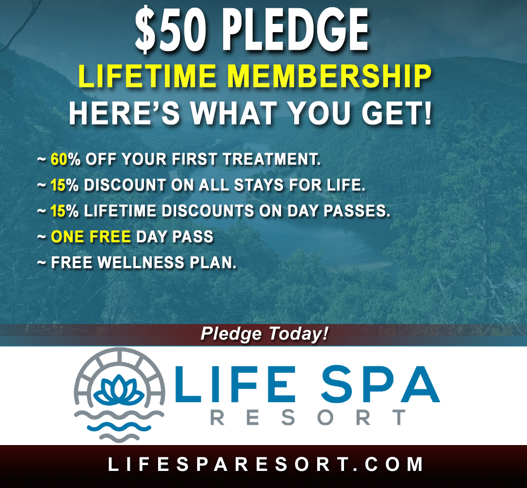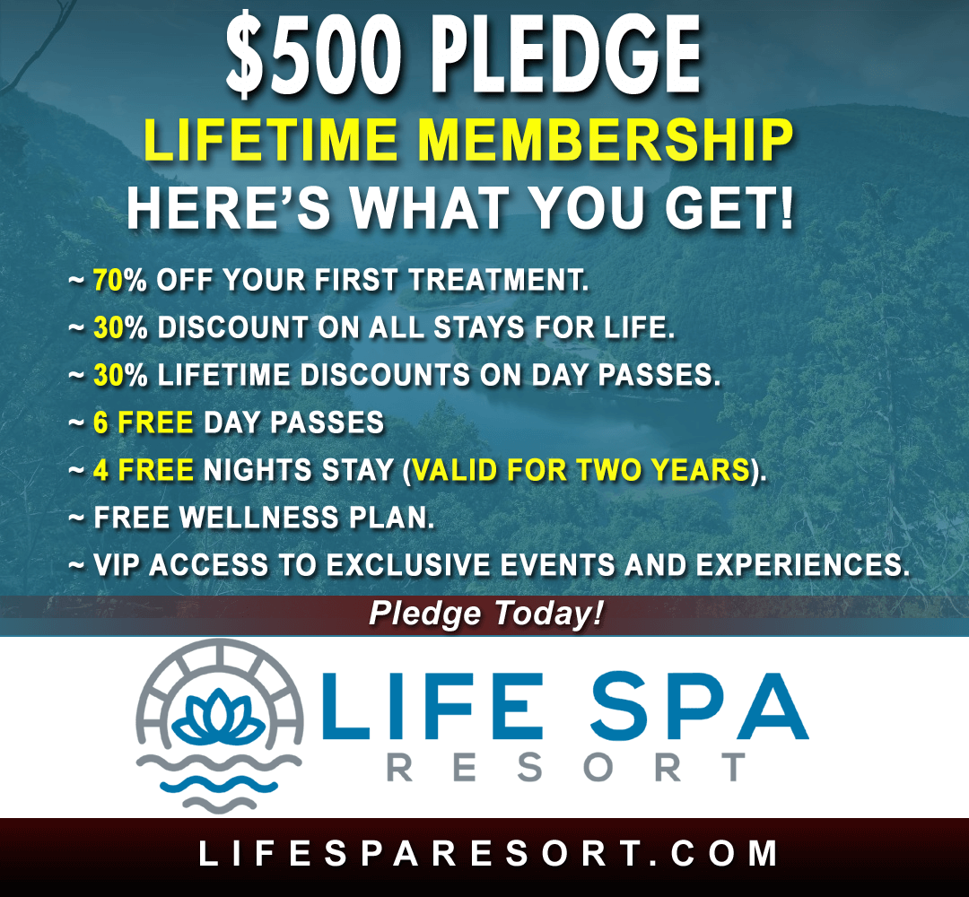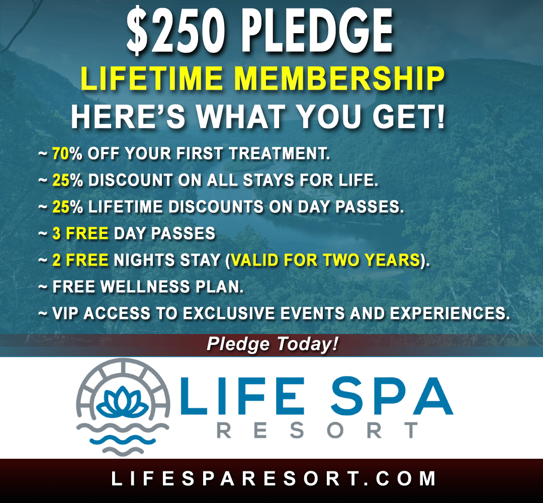 - For any questions or concerns regarding your pledge or membership, please contact us at info@LifeSpaResort.com.