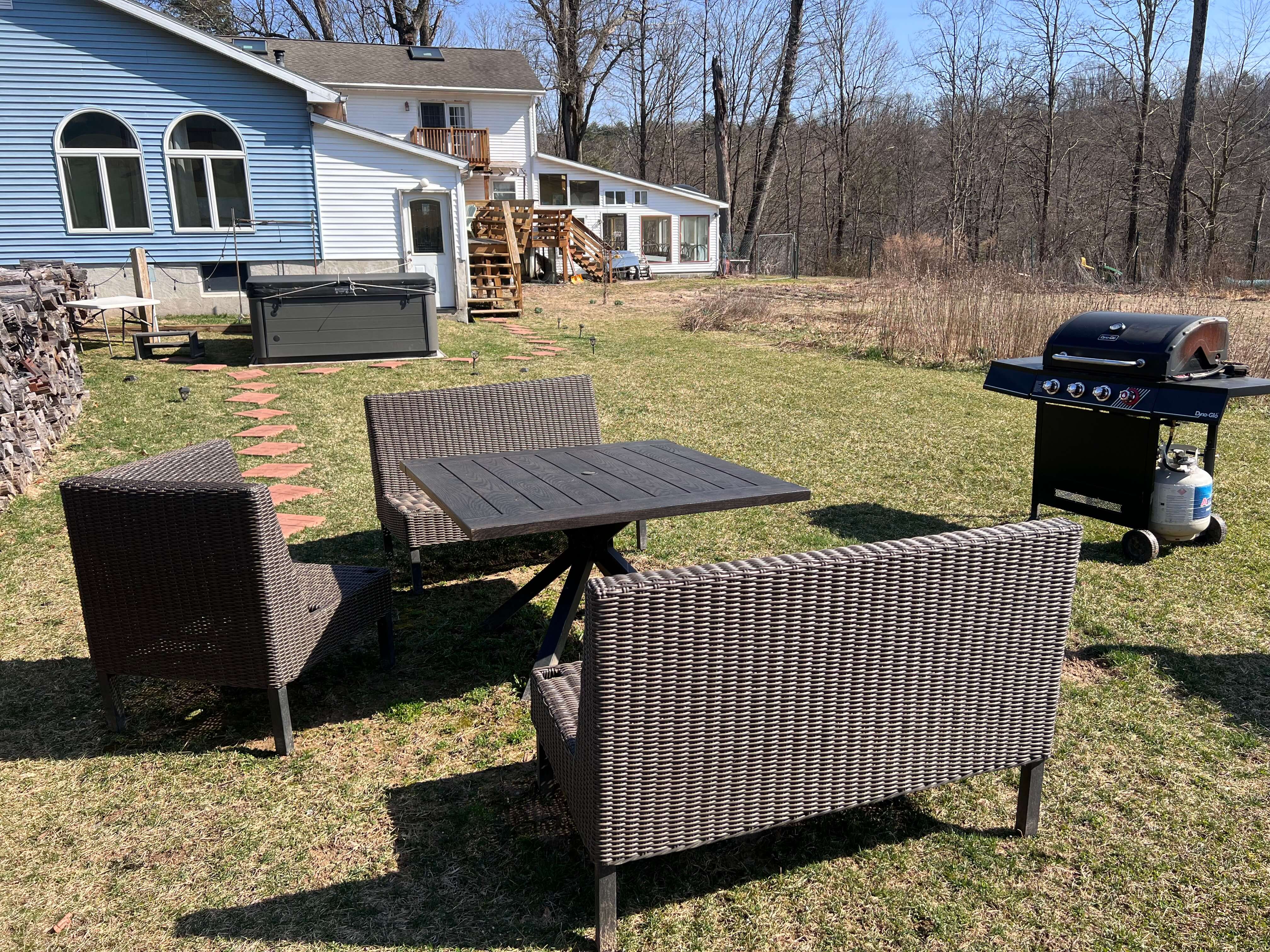 This charming four-bedroom home, part of the Glenwood Inn estate in the Poconos, offers a perfect blend of comfort and modern amenities. Ideal for families or groups, the home features spacious bedrooms, a welcoming living area, and a fully-equipped kitchen. The expansive backyard and large deck provide a serene outdoor space for relaxation and entertainment, all set against the tranquil backdrop of the Poconos.