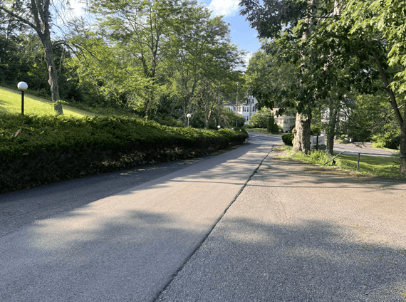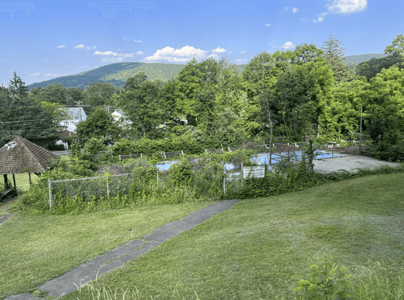 The are pictures of various outdoor sections of the property. These images highlight the landscape and key features.